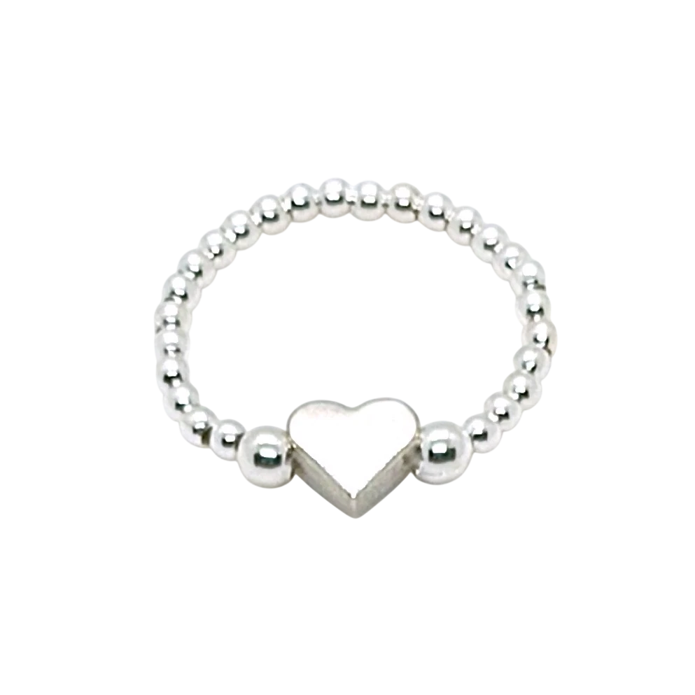 Material: plata #2 + corazón de plata + cuenta de plata + tanza elastizada.