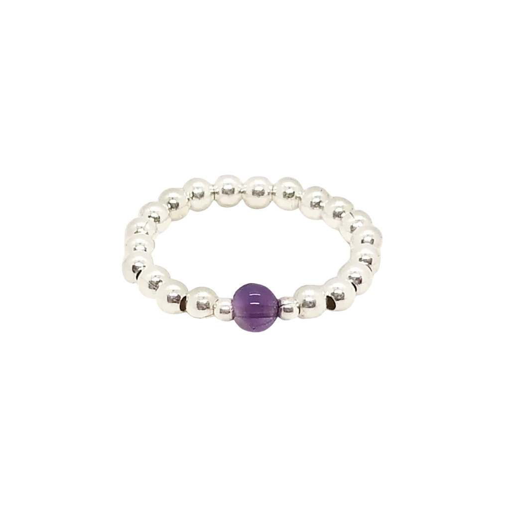 Material: plata #3 + piedra #4 amatista + cuenta de plata + tanza elastizada.
