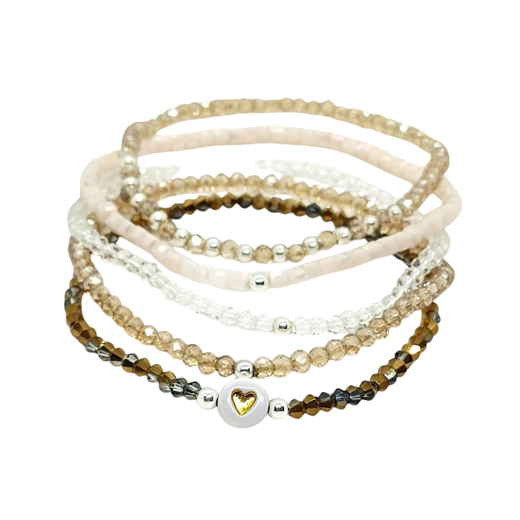 1 pulsera de cristal #3 cobre con corazon, 1 pulseras de cristal #3 champagne, 1 pulsera de cristal #3 transparente, 1 pulsera de cubo #3 nude, 1 pulsera pecas cristal #4 champagne con cuentas de plata 925 #3