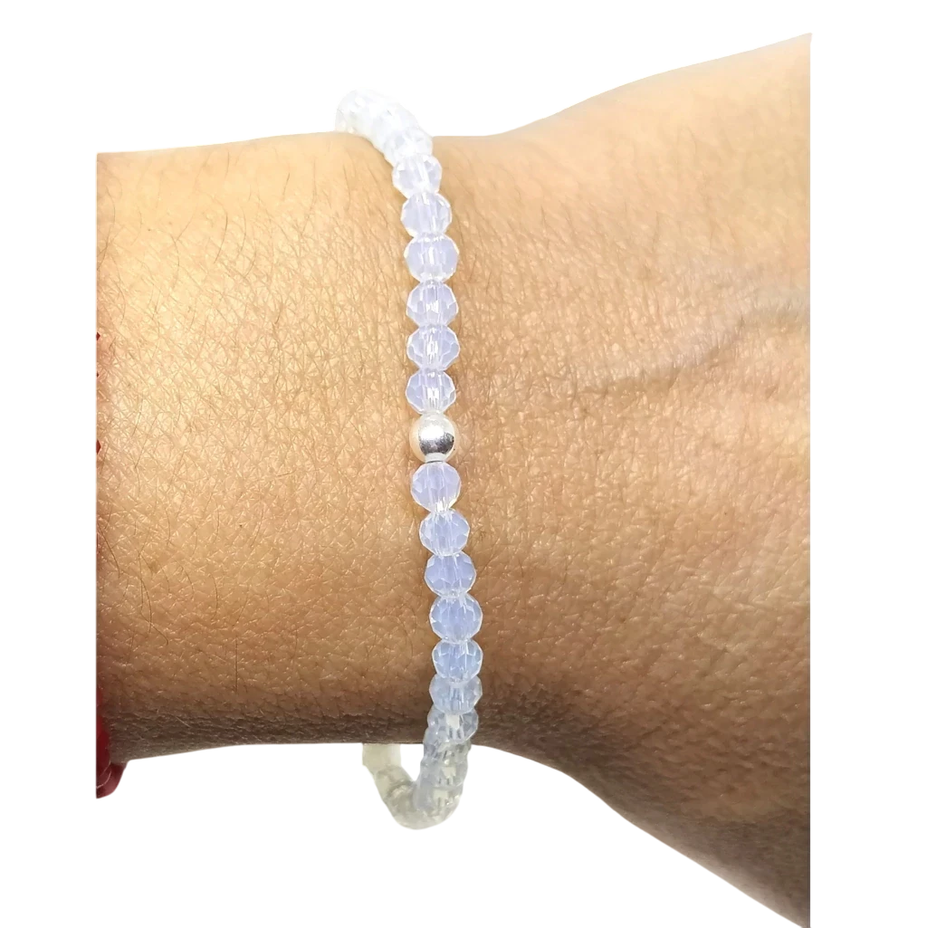 Material: cristal #4 + cuenta de plata + tanza elastizada.